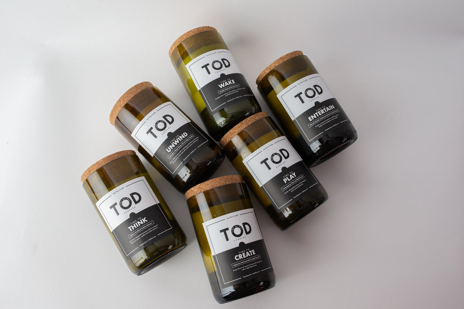 TOD Candles are made from recycled wine bottles. For this reason, each candle is a little different providing elements of distinction and uniqueness… just like you.