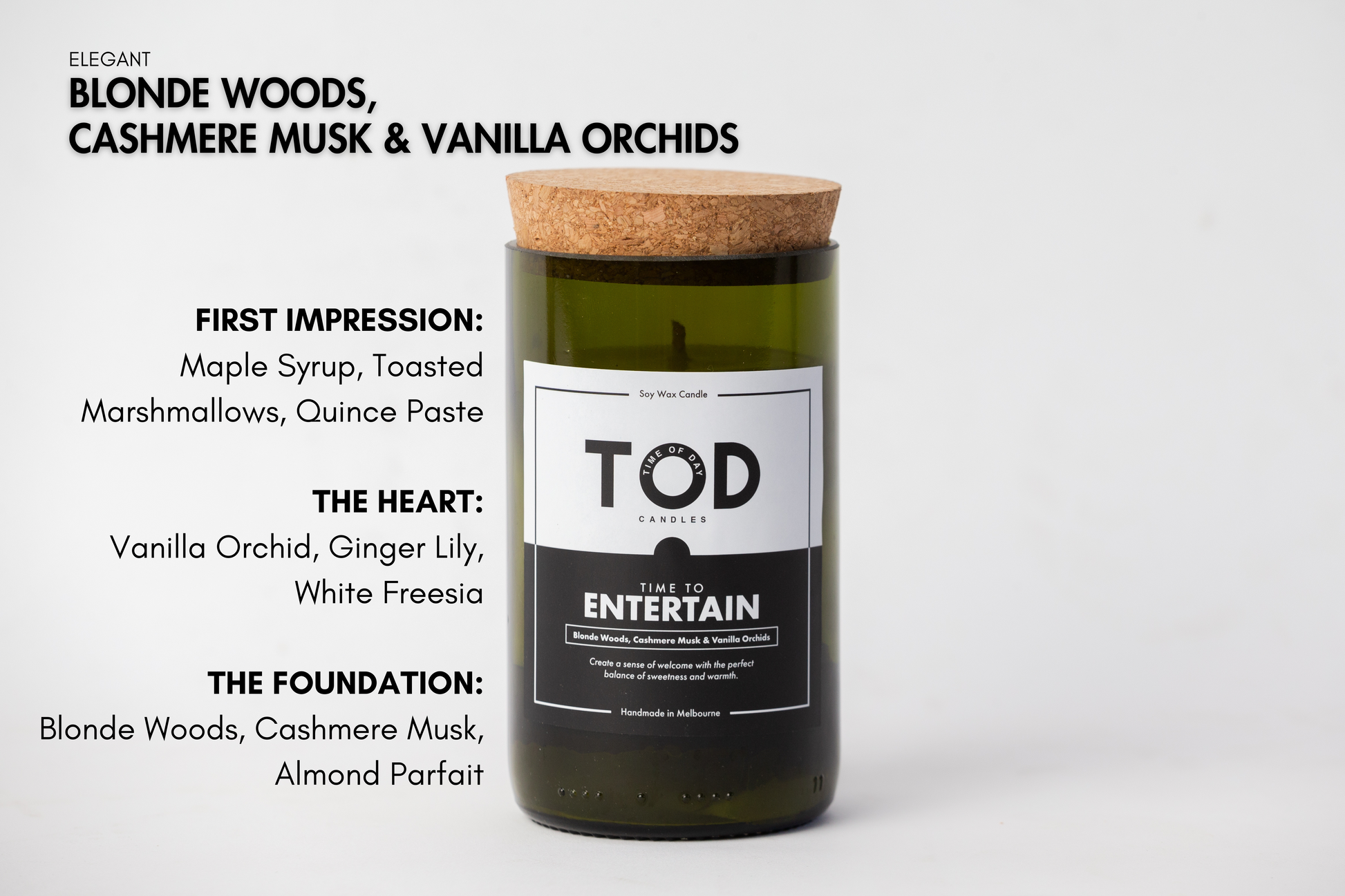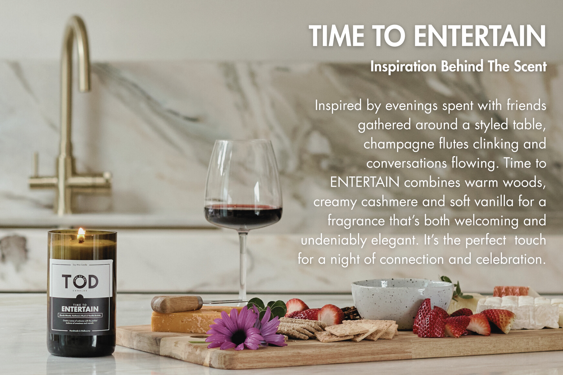 Our ENTERTAIN scent aligns perfectly to your exquisite taste and your love for life's finer things. The elegant aroma is a testament to your sense of style and your ability to create an atmosphere that is both inviting and luxurious.