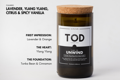 TOD Candles are made from recycled wine bottles. For this reason, each candle is a little different providing elements of distinction and uniqueness… just like you.